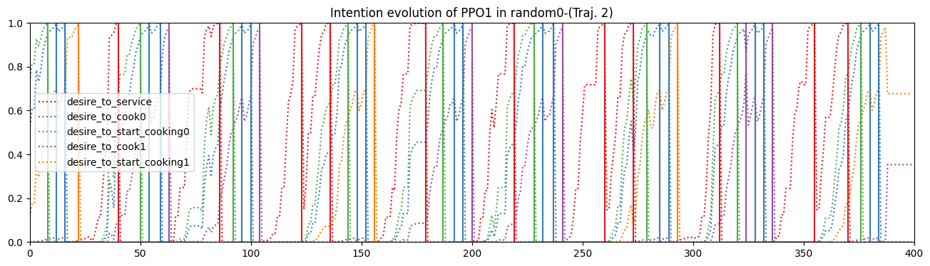 Finally, for a more ‘visual’ inspection, either the gif from the video or the plot below are useful tools to see intention progression through time, as the agent interacts with the environment, to as an alternate, visual explanation of agent behaviour.